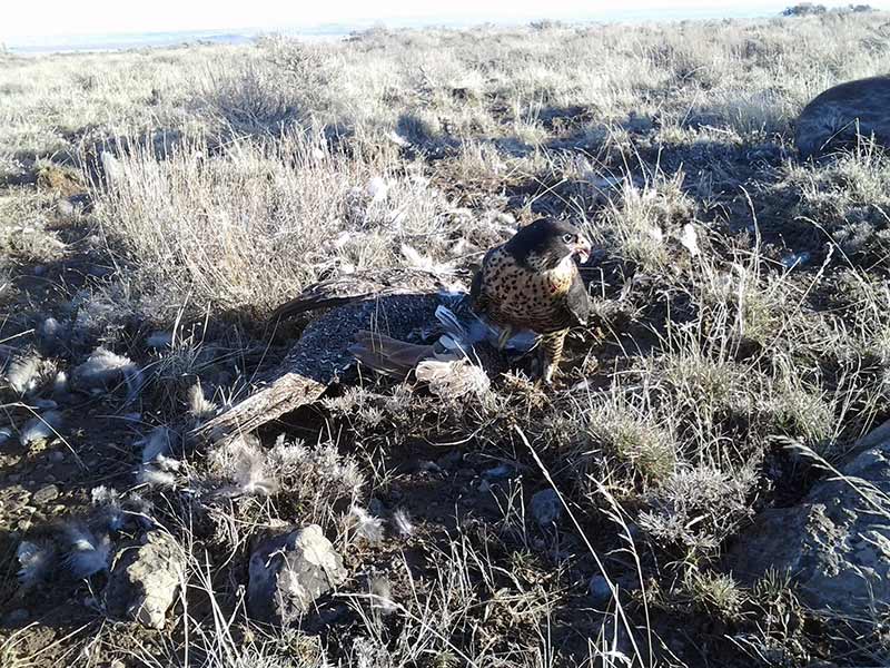 This is my first tame-hacked Canadian Anatum Peregrine from Prairie Sky Falcons, and I am duly impressed! Her transition from tame hack to falconry was seamless and effortless. From the time of fledging to now, following Lynn Oliphant's 4 week window program, her development has been unbroken; mimicking the natural development of falcons in the wild - and it shows! For someone as busy as I am, this falcon was a dream. She came to me already made to the hood and lure; as well as fit and confident in her flight skills. This falcon knew how to FLY. For those worried that tame-hacked falcons will tend to sit, this has certainly NOT been my experience. Fit falcons do not sit. She took to the drone immediately, and three days into the hunting season killed her first duck from a very nice pitch. Since then her hunting skills have only gotten better. There is no comparison between this falcon and the chamber-raised falcons I have flown in the past. As she stands relaxed, wings held tight to her body, eating her meal after a duck kill, I have no regrets. I will never fly another falcon that hasn't had a chance to develop naturally. I can't speak highly enough of the Prairie Sky Falcons project.